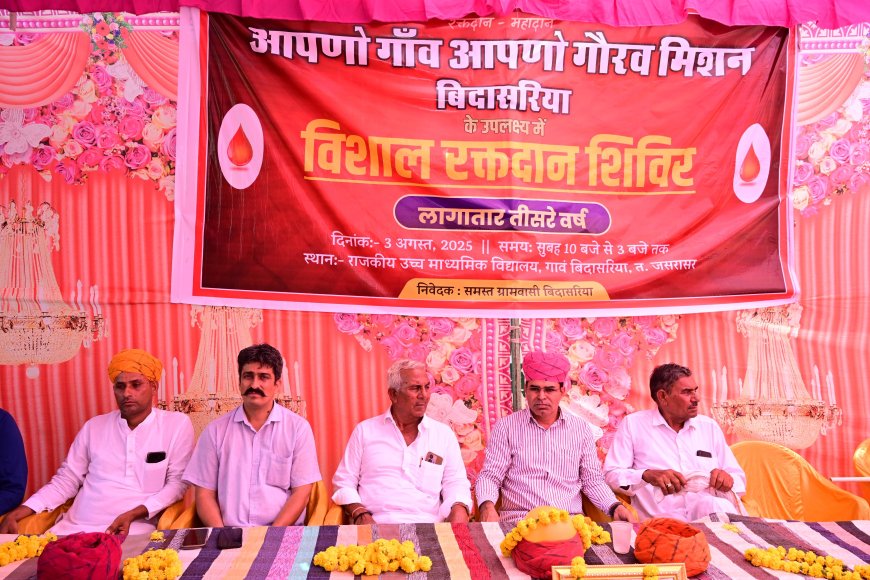 आपणो गाँव आपणो गौरव मिशन बिदासरिया तीसरी बार आयोजित विशाल रक्तदान शिविर हुआ सपन्न