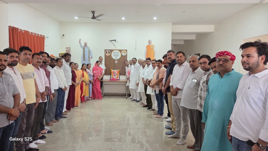 कि कश्मीर हमारा है और कश्मीर में एक विधान एक निशान और एक प्रधान होना चाहिए देश के प्रधानमंत्री नरेंद्र मोदी ने धारा 370 हटाकर वह सब कुछ कर दिखाया जो श्यामा प्रसाद मुखर्जी की इच्छा थी उन्होंने कहा कि श्यामा प्रसाद मुखर्जी का बलिदान व्यर्थ नहीं गया जो वह चाहते थे उनके सोच के अनुसार ही कश्मीर में धारा 370 हटाया गया। रामेश्वर पारीक ने बताया कि उस समय प्रधानमंत्री की कार्यशैली से आहत होकर ही श्यामाप्रसाद मुखर्जी ने मंत्री पद से इस्तीफा दिया और संघ का साथ लेकर निकल पड़े भारतीय जनसंघ राजनीति में आगे बढ़ने लगा. तब कश्मीर का झंडा अलग था कानून अलग था. डॉ श्यामा प्रसाद मुखर्जी ने इसका विरोध किया उनकी संदिग्ध मौत हुई, उन्हें धीमा जहर दिया गया इसकी जांच की लगातार मांग की लेकिन वहां की सरकार की हठधर्मिता से जांच नहीं हुई आज की श्रद्धांजलि सभा में पूर्व जिलाध्यक्ष विजय आचार्य,ओबीसी मोर्चा प्रदेशाध्यक्ष चंपालाल गैदर, महामंत्री मोहन सुराणा, श्याम सुंदर चौधरी, नरेश नायक, उपाध्यक्ष हनुमान सिंह चावड़ा, बाबूलाल गहलोत, रामेश्वर पारीक जिला मंत्री मनीष सोनी, संगीलाल गहलोत, भारती अरोड़ा, अनु सुथार, कौशल शर्मा, कुणाल कोचर,राजाराम सीगड़, चंद्र मोहन जोशी, भंवर जांगिड़, जसराज सिंवर, प्रेम गहलोत, धर्मपाल डूडी, अजय खत्री, पंकज अग्रवाल, दिलीप सिंह राजपुरोहित, भवानी पाईवाल, सरिता नाहटा, गजेंद्र सिंह भाटी, निशांत गौड, विनोद करल, करण नायक, राहुल पारीक, सुखचेन नायक, इंदु खत्री, सुभाष वाल्मीकि, महेंद्र ढाका, फारुख चौहान के साथ भाजपा कार्यकर्ता उपस्थित रहे।