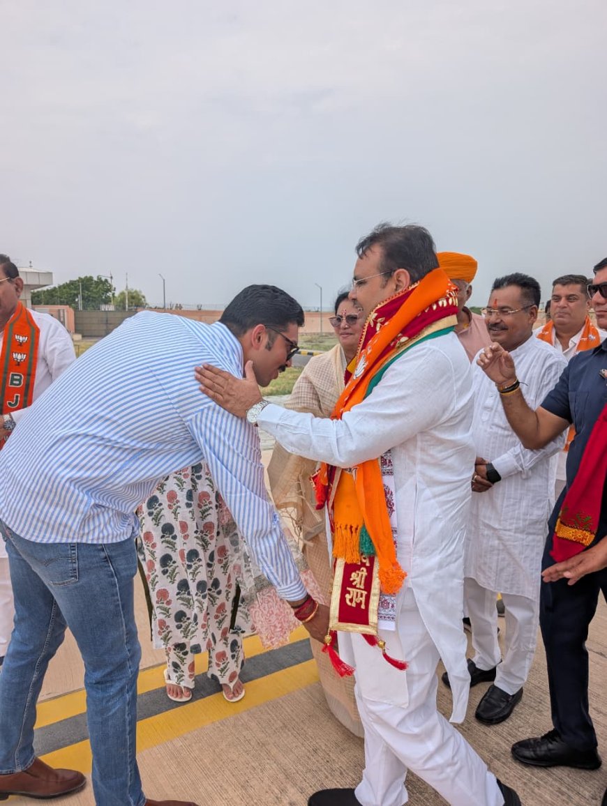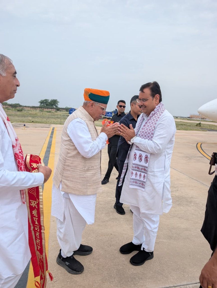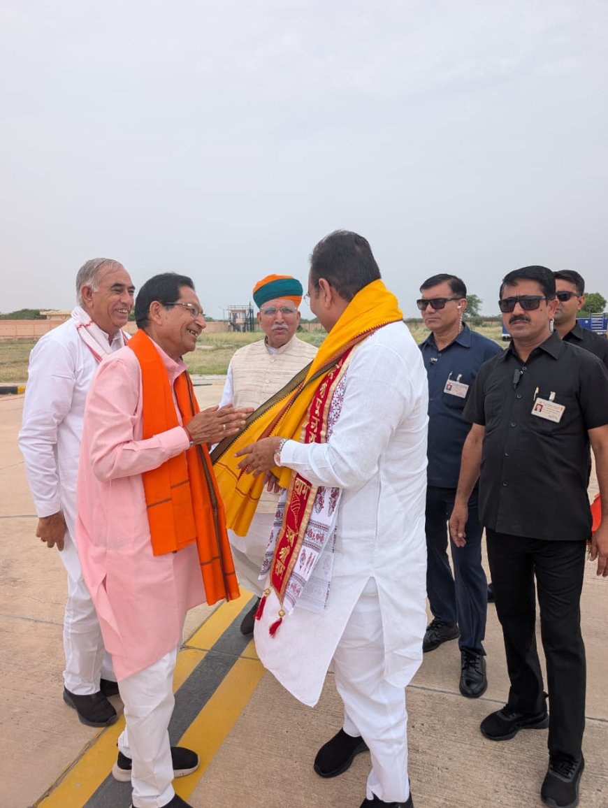 सुमन छाजेड़, जालम सिंह भाटी, गुमान सिंह राजपुरोहित, किशन चौधरी, जोगेंद्र शर्मा, अविनाश जोशी ने किया स्वागत।वहीं नाल एयरपोर्ट पर डीजीपी राजीव शर्मा से भी मौजूद रहे। इस दौरान केंद्रीय क़ानून मंत्री अर्जुन राम मेघवाल से उन्होंने मुलाकात की। साथ ही वहीं ज़िला कलक्टर नम्रता वृष्णि, SP कावेन्द्र सिंह सागर भी नाल एयरपोर्ट पर रहे मौजूद रहे।